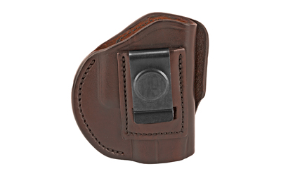 Handcrafted from quality steerhide with reinforced stitching and a secure steel clip, this 4-Way holster balances concealment options and day-to-day durability. Its multi-position design and close-fit molding make it a practical choice for users who value a single, adaptable leather holster that works for a range of carry styles and compact pistol platforms.