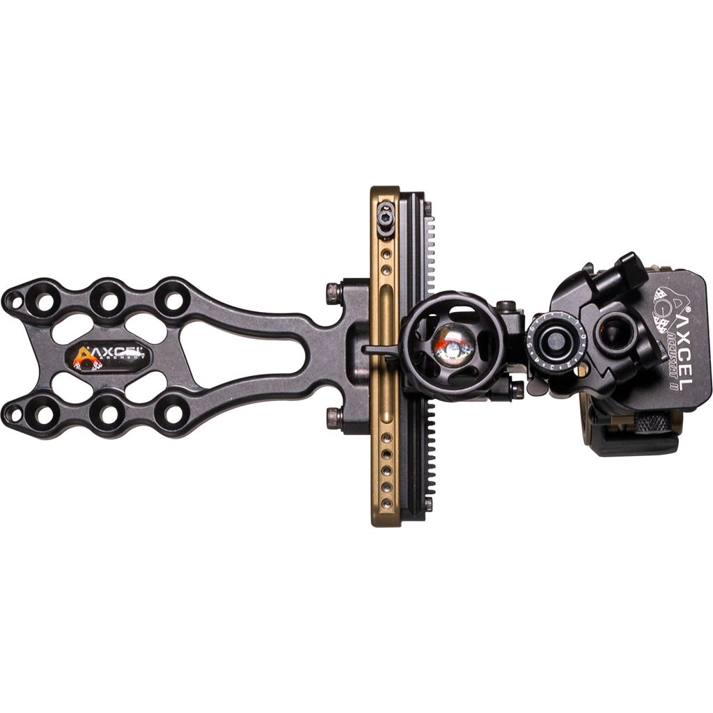 The Axcel Landslyde Slider Tactical Bowhunting Sight, featuring the AccuStat II Micro Pin setup, is a premier aiming tool for dedicated archers. It boasts silent gear action for smooth adjustments, a rapid adjust knob for quick elevation changes, and a detachable sight block for accurate shots. Offering true 1st, 2nd, and 3rd axis adjustments, it meets the technical needs of any archer, while the AccuStat II scope provides versatile multi-pin options. Durable under harsh conditions, it comes with 8 double-sided metal scales for customization in various hunting scenarios. The Axcel Landslyde exemplifies precision craftsmanship for archery enthusiasts.