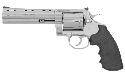 Colt’s popular Snake Gun revolver series gains a new addition with the updated Anaconda. The 2021 Anaconda has been fully re-designed to utilize an oversized Python action. Bulked-up with a solid stainless steel frame for strength and durability, this DA revolver is worthy of its pedigree. Experience the Linear Leaf Spring Action for a non-stacking, smooth-as-glass trigger pull. With recoil-absorbing Hogue grips and adjustable, interchangeable sights, this .44 Magnum is cool and comfortable from the range to the woods. A recessed target crown offers protection and the frame is drilled and tapped for optics mounts, making the Anaconda an unstoppable huntsman’s sidearm.