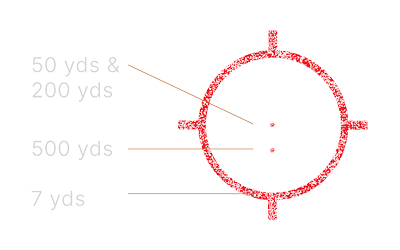 - The reticle is a 68 MOA ring with two 1 MOA center dots for fast alignment and precision aiming.
