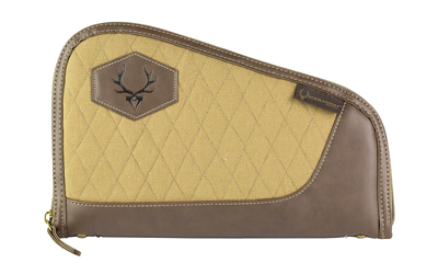 The Evolution Outdoor President Series 12-inch pistol case combines durable canvas construction with refined antique-brass hardware. Dual-compound foam lines the interior to cushion pistols during storage and transport. Finished in a brown tone, the case offers a classic, understated appearance suitable for range bags and travel. Built as a premium pistol case, it balances protection and presentation without excess bulk.