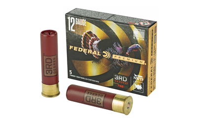 Federal Premium 3rd Degree is a purpose-built turkey load that combines a three-stage payload and the FLITECONTROL FLEX wad to deliver consistent flight characteristics through both standard and ported turkey chokes. The load mixes copper-plated lead, FliteStopper pellets, and heavyweight TSS to cover close, mid and extended ranges while maintaining dependable patterning. These shells are packaged as 5 rounds per box and are intended for turkey hunting applications where versatile pattern performance is required.