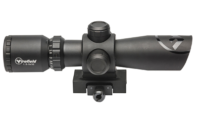 From close to mid-range, the Firefield Barrage 1.5-5×32 riflescope is a low-power variable optic built for durability and everyday utility. The tube is constructed from aircraft-grade 6061-T6 aluminum and the optic carries an IPX4 waterproof rating for use in variable weather. Glass is fully multi-coated with AR green, scratch-resistant, anti-reflective coatings, and the illuminated Mil-Dot reticle offers red/green brightness settings with a reported 100-hour battery life. The Barrage includes a Weaver-style integral two-piece mount and is tuned for use on close- to mid-range platforms.