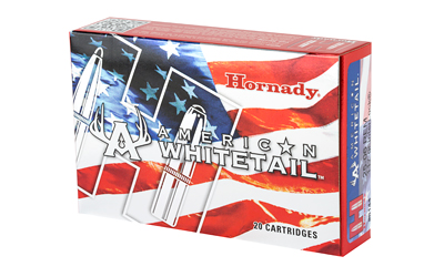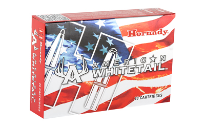 Hornady American Whitetail rifle ammunition for the .25-06 Remington is loaded with 117-grain InterLock boat-tail soft point bullets and packaged 20 rounds per box. These factory loads are intended for hunting and field use on medium game and are assembled with premium components, including brass cases and quality primers. The InterLock ring is designed to lock jacket and core together during expansion for retained mass and consistent terminal performance. Loads are matched to pressures and components intended for reliable function across a variety of rifles.