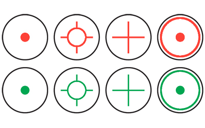 - Reticles illuminate in both red and green with up to five intensity settings per color.