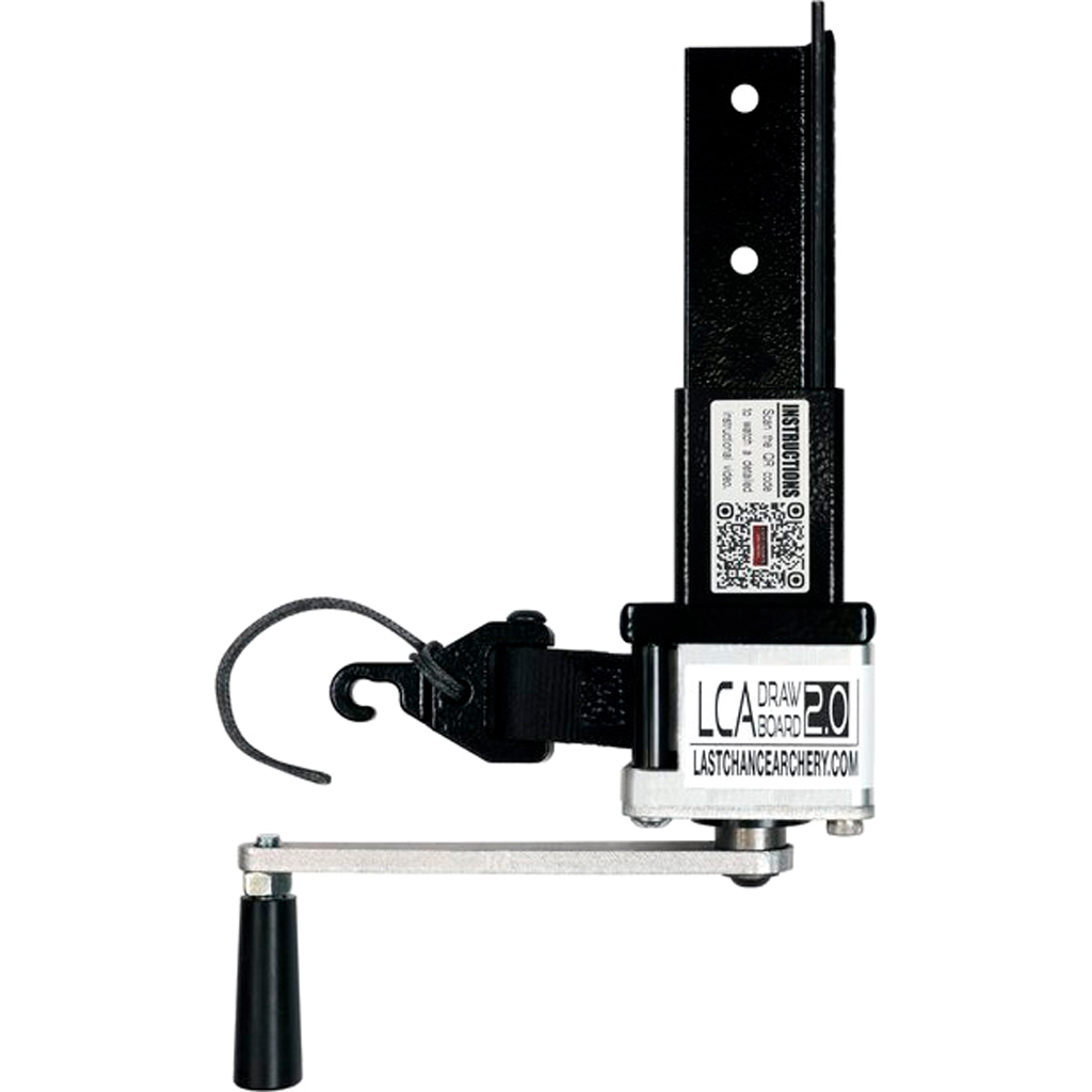 The Last Chance Archery Draw Board 2.0 is an advanced tool designed for precision tuning and setup of compound bows. Featuring a custom-designed winch and clutch system, it includes a heavy-duty 1,500 lb-rated strap, a solid steel hook with a safety loop, and a redesigned Precision Bow Holder. This bow holder incorporates height and depth adjustments with spring-loaded side plates to keep the bow level while alignment marks ensure consistent accuracy. Ideal for checking cam timing, lean, and arrow rest adjustments, the Draw Board 2.0 mounts easily to any LCA bow press or workbench using included hardware. Available in Standard and Ultimate models, it provides exceptional performance for archers seeking precision tuning.