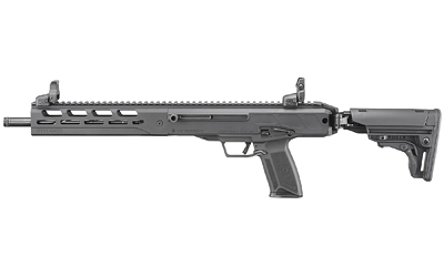 The Ruger LC Carbine is a compact, lightweight modern sporting rifle chambered in 5.7x28mm. Its bolt-over-barrel layout and magazine-in-grip design provide a balanced, pointable platform well suited to range use and sport shooting. The 16.25″ fluted, nitride-treated barrel is threaded for common muzzle accessories and the rifle uses a CNC-milled M-LOK handguard with a full-length Picatinny rail for optics. Ergonomic controls and a folding, adjustable-length synthetic stock support easy transport and configurable fit.