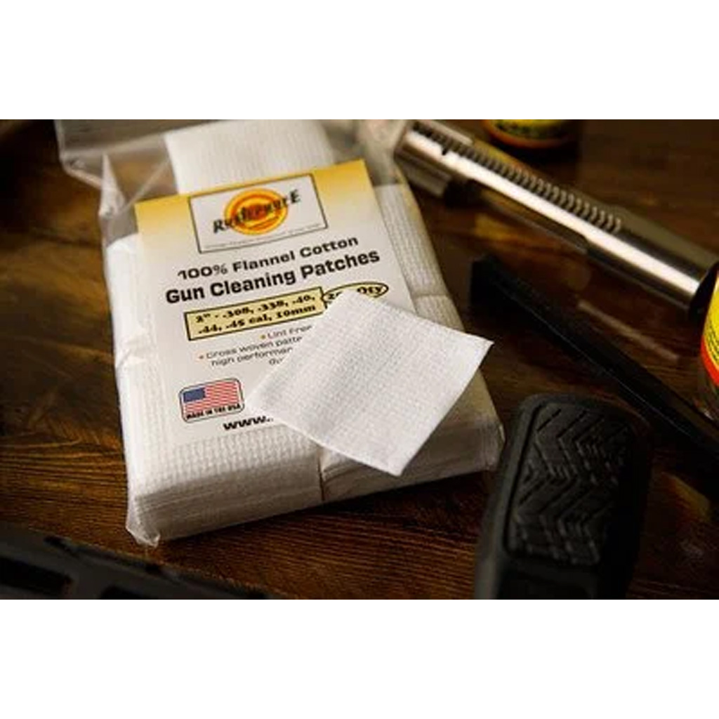 These woven gun cleaning patches are made from 100% flannel cotton and designed to retain solvent and oil more effectively than non-woven materials. The cross-woven construction helps capture fouling and debris for thorough firearm maintenance. A lint-free design prevents fibers from entering the action or barrel during cleaning.
