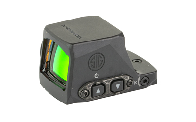 The SIG SAUER ROMEO‑X Enclosed Compact is a sealed reflex sight engineered for compact pistols and platforms that use a compact RX footprint. It provides a 3 MOA red dot with 1x magnification and a 24 mm objective for rapid target acquisition. The sight uses a side‑load CR1632 battery and SIG’s patent‑pending flexure system to achieve a low deck height for effortless co‑witness with standard‑height iron sights. The optical system is fully enclosed, sealed and Argon‑purged while the housing is durable 7075 aluminum for long‑term service in carry and professional applications.