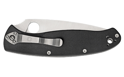 The Spyderco Resilience C142GP is a purpose-driven folding pocket knife built for everyday carry and general utility. It features a 4.20 inch 8Cr13MoV stainless blade with a plain edge and a satin finish, paired with black G-10 handle scales over skeletonized steel liners. The design includes a Michael Walker LinerLock and phosphor bronze washers for smooth, reliable operation, plus a four-position stainless pocket clip for configurable carry.