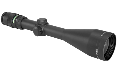 The Trijicon AccuPoint 2.5-10×56 is a variable-power riflescope built on a 30mm tube with a large 56mm objective for strong low-light performance. It features an illuminated Mil-Dot crosshair with a green aiming dot using fiber optics and tritium for battery-free illumination. Constructed from 6061-T6 aluminum with hardcoat anodizing and multi-coated lenses, the scope is designed for reliable field use and precise adjustments.