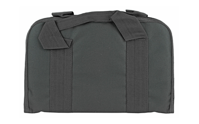 The US PeaceKeeper Attache Case is a slim, padded handgun case designed for organized transport and compact storage. It protects a handgun in a brushed tricot-lined interior pocket and accommodates up to five spare magazines with wide elastic retention bands. The case features heavy-duty, self-repairing zippers with locking capability and wraparound handles for straightforward handling. Its water-resistant 600 denier polyester construction is built for routine range and storage use.