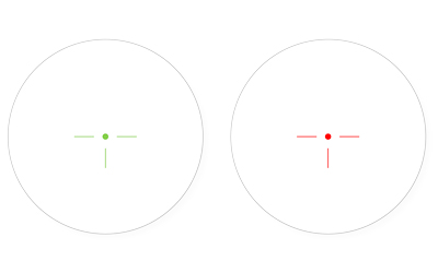- The reticle provides red or green T-Dot illumination with variable brightness control.