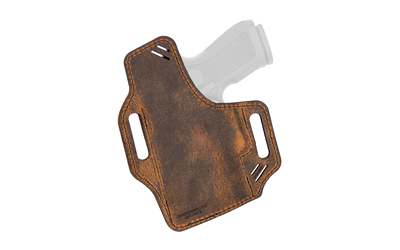 Versacarry’s Guardian Arc Angel is a right‑hand outside‑the‑waistband (OWB) holster made from vegetable‑tanned water‑buffalo leather. It pairs a double‑ply raised backing with Flex Vent technology to accelerate break‑in while protecting the wearer. The holster is sized as Size 1 for full‑size pistols and accommodates barrels up to 4".