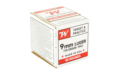 The Winchester USA White Box 9mm Luger is a 115-grain Full Metal Jacket cartridge packaged as 50 rounds per box and intended for target and practice use. These rounds are listed with a muzzle velocity of 1190 feet per second and a muzzle energy of 362 foot-pounds. The cartridges use brass cases and are indicated as reloadable. This ammunition is presented for consistent, range-oriented performance and general training applications.